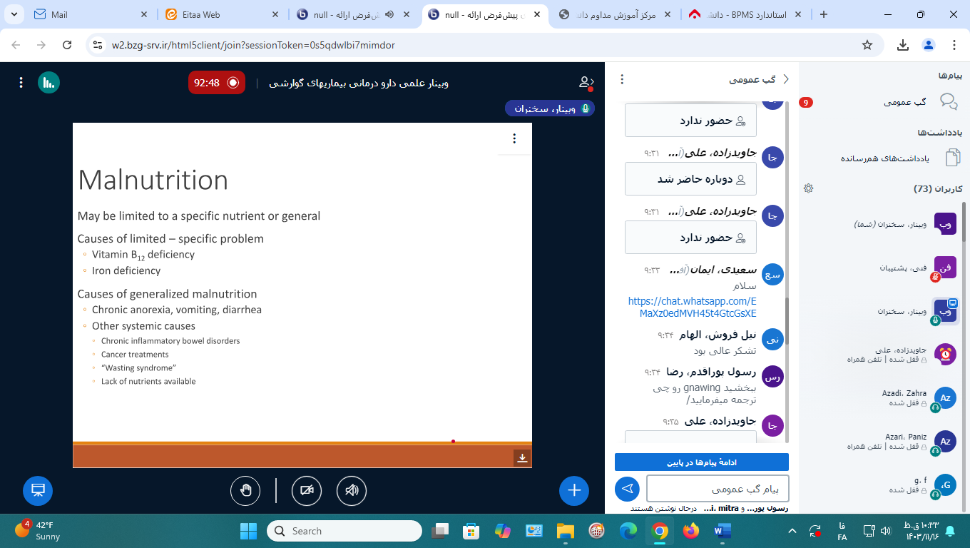 وبینار دارودرمانی بیماریهای گوارشی ، روز سه شنبه 16 بهمن 1403 از طریق سامانه آموزش مداوم برگزار شد. اسلایدهای این وبینار از طریق سایت آموزش مداوم معاونت آموزشی صفحه اسلایدهای آموزشی 1403 قابل مشاهده ودانلود می باشد.